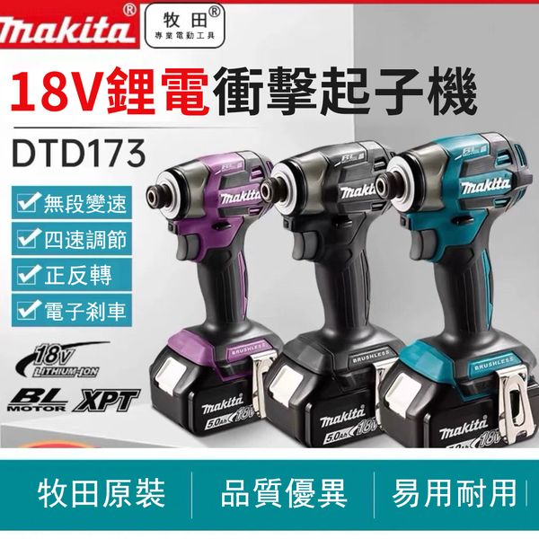 5分鐘前台灣現貨【MAKITA 牧田】 18V鋰電無刷衝擊起子機(DTD173) 日本製 強勁動力 - 牧田173一電一充:包含173主機*1,電池*1,充電器*1,工具盒*1,配件*1